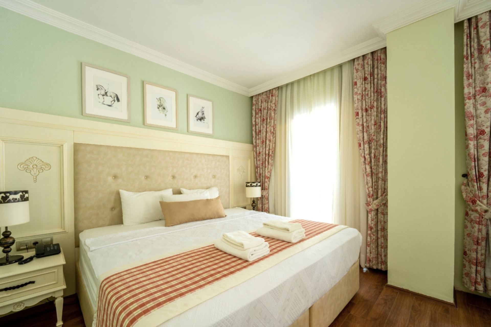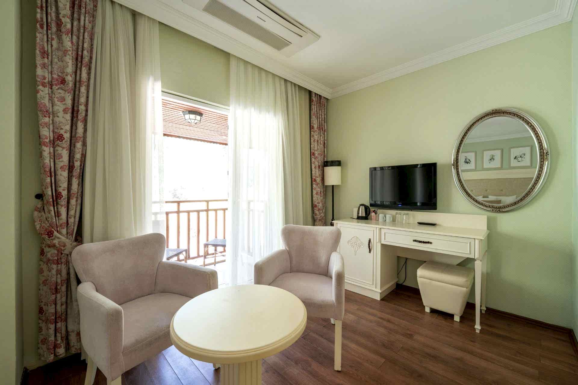 Deluxe odalar 24 m2 olup, daha geniş ve ferah oda keyfini yaşamanız için ayrılmış bölümü ve oturma grubuyla hizmetinizdedir.